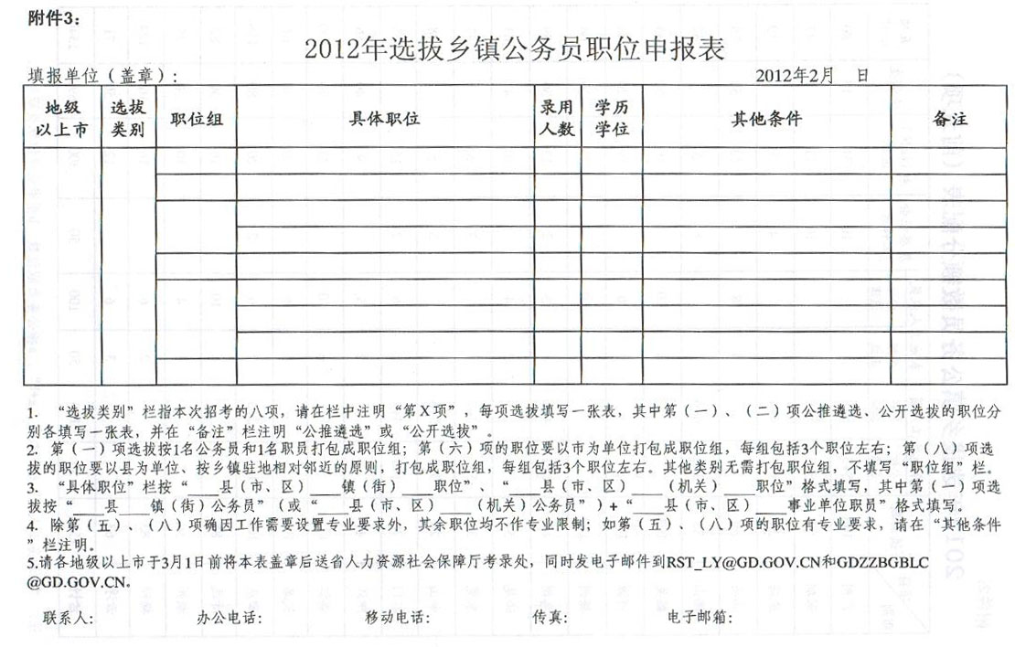 3.2012年选拔县镇公务员职位申报表