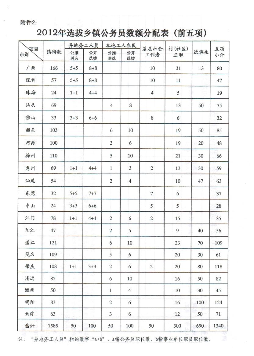 2.2012年选拔县镇公务员数额分配表(前五项)