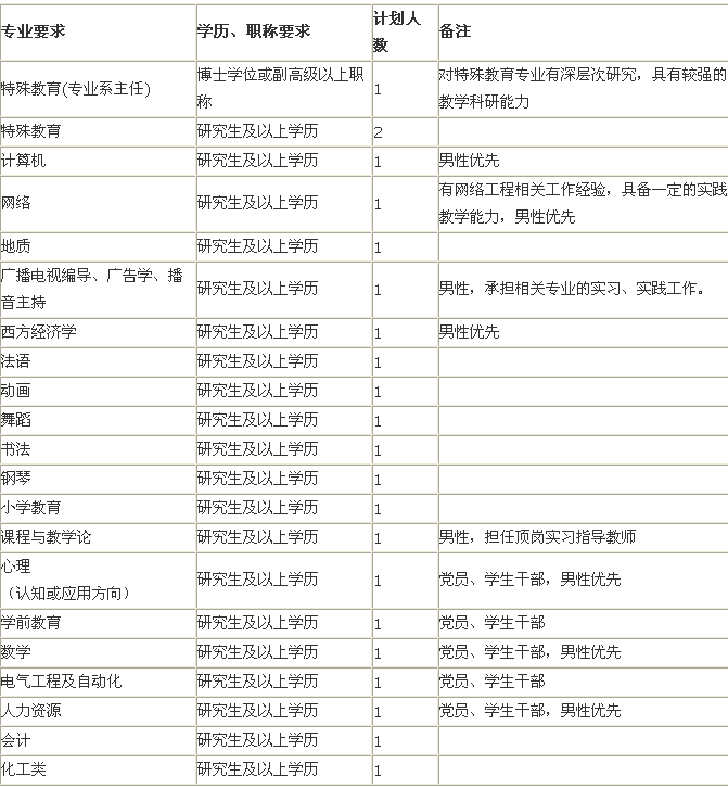1、应聘人员应热爱教育事业,具有较高的职业素养。同等条件下中共党员、学生干部优先。