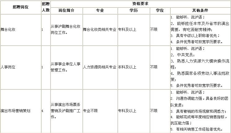 由上海沪剧院组织考察,主要考察应聘人员的思想政治素质、遵纪守法情况、道德品质和诚信记录等。